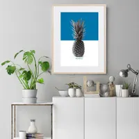 【現代アートポスター】ブルーパイン Blue パイナップルイラスト A3(M) フレームセット:無垢 41.0×52.5cm