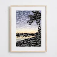 【現代アートポスター】ハワイ 風景景色 海岸 ビーチ サンセット カリグラフィー A2(L) 54.5×72.7cm(ポスターのみ)