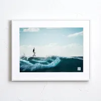 【現代アートポスター】 海面 波 一輪車 少女 写真コラージュ A4(S) フレームセット:白 29.4×38.4cm