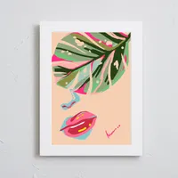 【現代アートポスター】ボタニカル 観葉植物 唇 Lip 女性 イラスト A2(L) 54.5×72.7cm(ポスターのみ)