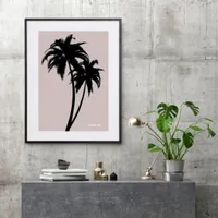【現代アートポスター】ヤシの木 くすみピンク 大人可愛い A2(L) フレームセット:黒 55.1×73.3cm