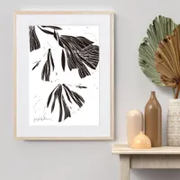 【現代アートポスター】植物 葉っぱ モノトーン 白黒 おしゃれイラスト A3(M) フレームセット:無垢 41.0×52.5cm