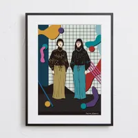 【現代アートポスター】エモい シティポップ ファッション 目出し帽 マスク 女性おしゃれイラスト A3(M) 39.4×50.9cm(ポスターのみ)