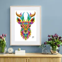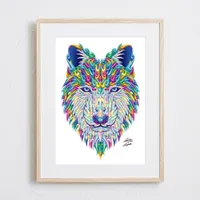 【現代アートポスター】動物 オオカミ 狼 模様 イラスト A4(S) フレームセット:無垢 30.4×39.4cm