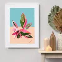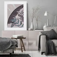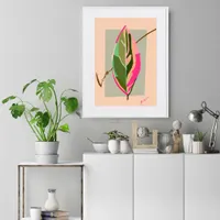 【現代アートポスター】ボタニカル 観葉植物 ペインティング ピンクPink イラスト A2(L) フレームセット:白 55.1×73.3cm