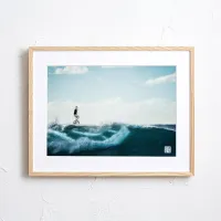 【現代アートポスター】 海面 波 一輪車 少女 写真コラージュ A2(L) フレームセット:無垢 56.1×74.3cm