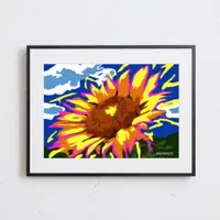 【現代アートポスター】向日葵 ひまわり yellow イラスト A4(S) フレームセット:黒 29.4×38.4cm