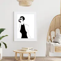 【現代アートポスター】サングラス モノトーン 都会的な女性 おしゃれイラスト A2(L) フレームセット:白 55.1×73.3cm
