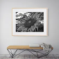 【現代アートポスター】向日葵 ひまわり 白黒 モノトーン イラスト A2(L) フレームセット:無垢 56.1×74.3cm