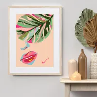 【現代アートポスター】ボタニカル 観葉植物 唇 Lip 女性 イラスト A4(S) 28.8×37.8cm(ポスターのみ)