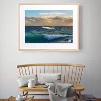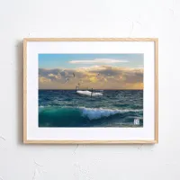 【現代アートポスター】 海 波 白いベッド 空想の世界 夢 写真コラージュ A2(L) フレームセット:無垢 56.1×74.3cm