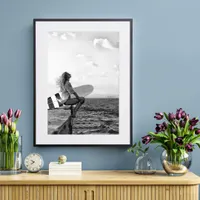 【現代アートポスター】サーフィンガール 海 波 モノトーン A3(M) フレームセット:黒 40.0×51.5cm