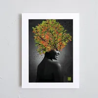 【現代アートポスター】紅葉 植物 自然 女性 モノクロ 写真コラージュ A4(S) 28.8×37.8cm(ポスターのみ)