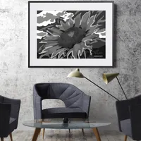 【現代アートポスター】向日葵 ひまわり 白黒 モノトーン イラスト A2(L) フレームセット:黒 55.1×73.3cm