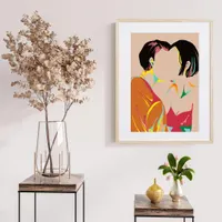 【現代アートポスター】スタイリッシュ 人物 カラフル ポップイラスト A3(M) フレームセット:無垢 41.0×52.5cm