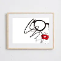 【現代アートポスター】モノトーン白黒 赤色の唇 かっこいい女性 A2(L) 54.5×72.7cm(ポスターのみ)