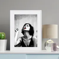 【現代アートポスター】モノトーン白黒 赤色の唇 かっこいい女性 A4(S) フレームセット:白 29.4×38.4cm