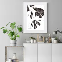 【現代アートポスター】植物 葉っぱ モノトーン 白黒 おしゃれイラスト A3(M) フレームセット:白 40.0×51.5cm