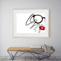 【現代アートポスター】サングラス モノトーン 唇 おしゃれな女性イラスト A4(S) フレームセット:無垢 30.4×39.4cm