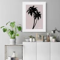 【現代アートポスター】ハワイ 風景景色 ヤシの木 夕焼け カリグラフィー A3(M) フレームセット:無垢 41.0×52.5cm