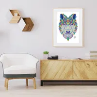 【現代アートポスター】動物 オオカミ 狼 模様 イラスト A2(L) フレームセット:無垢 56.1×74.3cm
