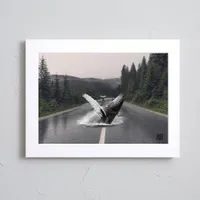 【現代アートポスター】 鯨 クジラ 海 動物 モノトーン モノクロ 道路 写真コラージュ A3(M) 39.4×50.9cm(ポスターのみ)