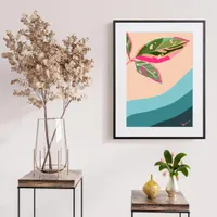 【現代アートポスター】ボタニカル 観葉植物 ペインティング ピンクPink イラスト A3(M) 39.4×50.9cm(ポスターのみ)