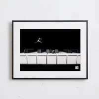 【現代アートポスター】ピアノ 鍵盤 モノトーン 写真コラージュ 子供 キッズ A4(S) フレームセット:黒 29.4×38.4cm