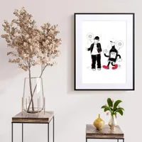 【現代アートポスター】アメリカンポップ コミカル モノトーン うさぎ 子ども ピザ イラスト A2(L) フレームセット:無垢 56.1×74.3cm