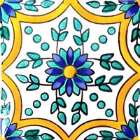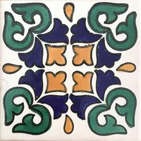 タイル100角 10枚セット 花車のよう 深いブルーとグリーンが穏やか ガルビ0792