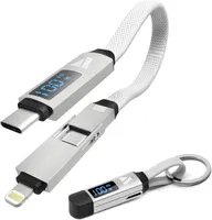 SUPERV cc16 3-in-1 キーリング型 充電ケーブル 14cm | 急速充電 USB-C to Type-C / ライトニング 14cm (サンプル) グレー