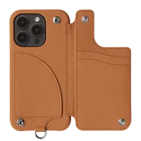 Genuine Leather multi-functional Case for iPhone 15シリーズ(ハンドストラップ付)iPhone 14対応 iPhone 15 Pro Max/Brown