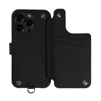 Genuine Leather multi-functional Case for iPhone 15シリーズ(ハンドストラップ付)iPhone 14対応 iPhone 15/Black