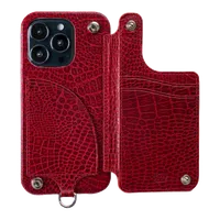 POCHE FLAT CROCO iPhone14Pro クロコ型ワインレッド