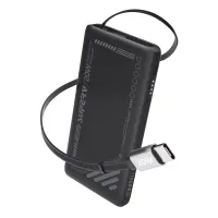 SUPERV Power14 巻取り式ケーブル内蔵(Type-C 70cm) モバイルバッテリー 10,000mAh PD20W ブラック