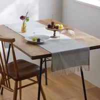 betises リネンテーブルランナー 114cm|ストライプ&タッセル リネンテーブルランナー