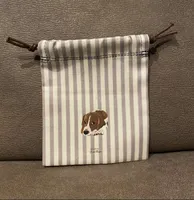 【厚手巾着】 オリジナルイラスト わんこモチーフ 巾着 厚手生地 プレゼントにも◎ ボストンテリア (約120mm×140mm)
