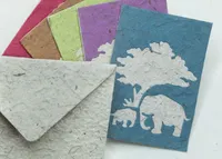 【封筒付きカード】ゾウのpooからできたエシカルな紙! 『 プープーペーパー』 5色グリーティングカード Elephant Mom & Baby Elephant ランダム