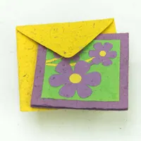 【封筒付きカード】ゾウのpooからできたエシカルな紙! 『 プープーペーパー』 カラフルな花柄と蝶柄 グリーティングカード Three Purple Flowers