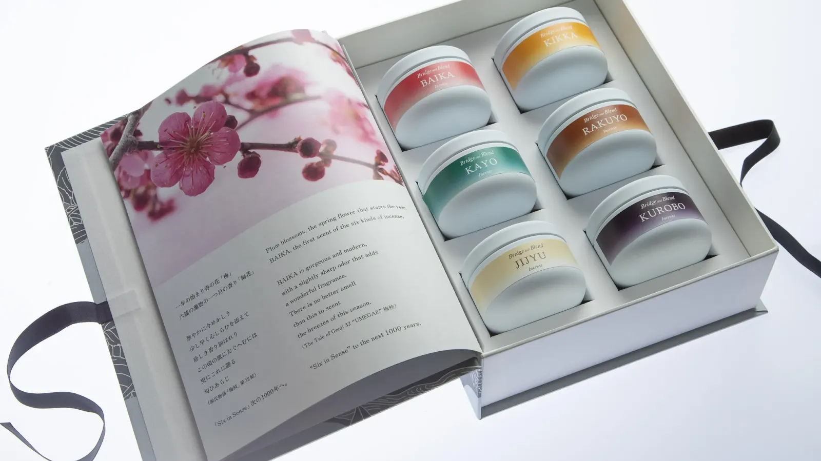 “Bridge and Blend”は源氏物語が生まれた平安時代の調香にインスパイアされた香りコレクション「Six in Sense」を展開するお香ブランド。ニューヨークのフレグランスショップやロサンゼルスのコンセプトショップでも販売されています。