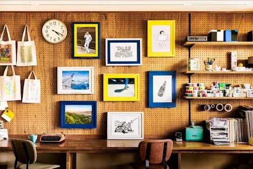 ブランド誕生のきっかけになった色あざやかな”ペーパーフレーム”は、再利用率約90%の段ボールを使った紙の額縁。