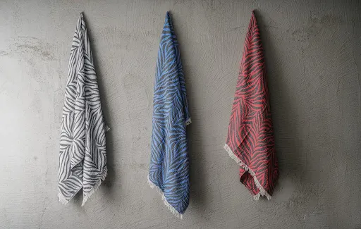 「CottonHugg」は、トルコタオル(ペシュテマル)の街トルコ・デニズリで仕入れを行い、日本で販売しています。使用しているのはトルコ産オーガニックコットンで、オスマン帝国時代の16世紀後半から続く伝統品。最終工程では、トルコ・デニズリの職人たちによって、1つ1つ丁寧に手作りされたフリンジがつけられています。