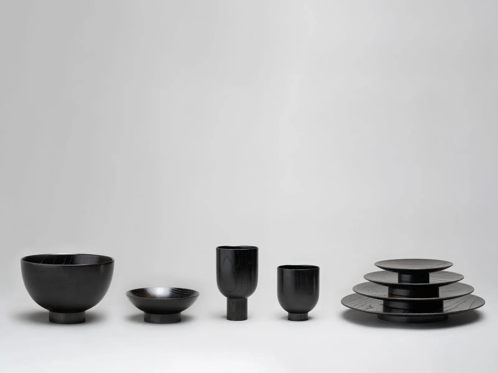 こだわりは、すべての器に「黒漆」を用いていること。木目の美しさが際立ち、存在感抜群です。