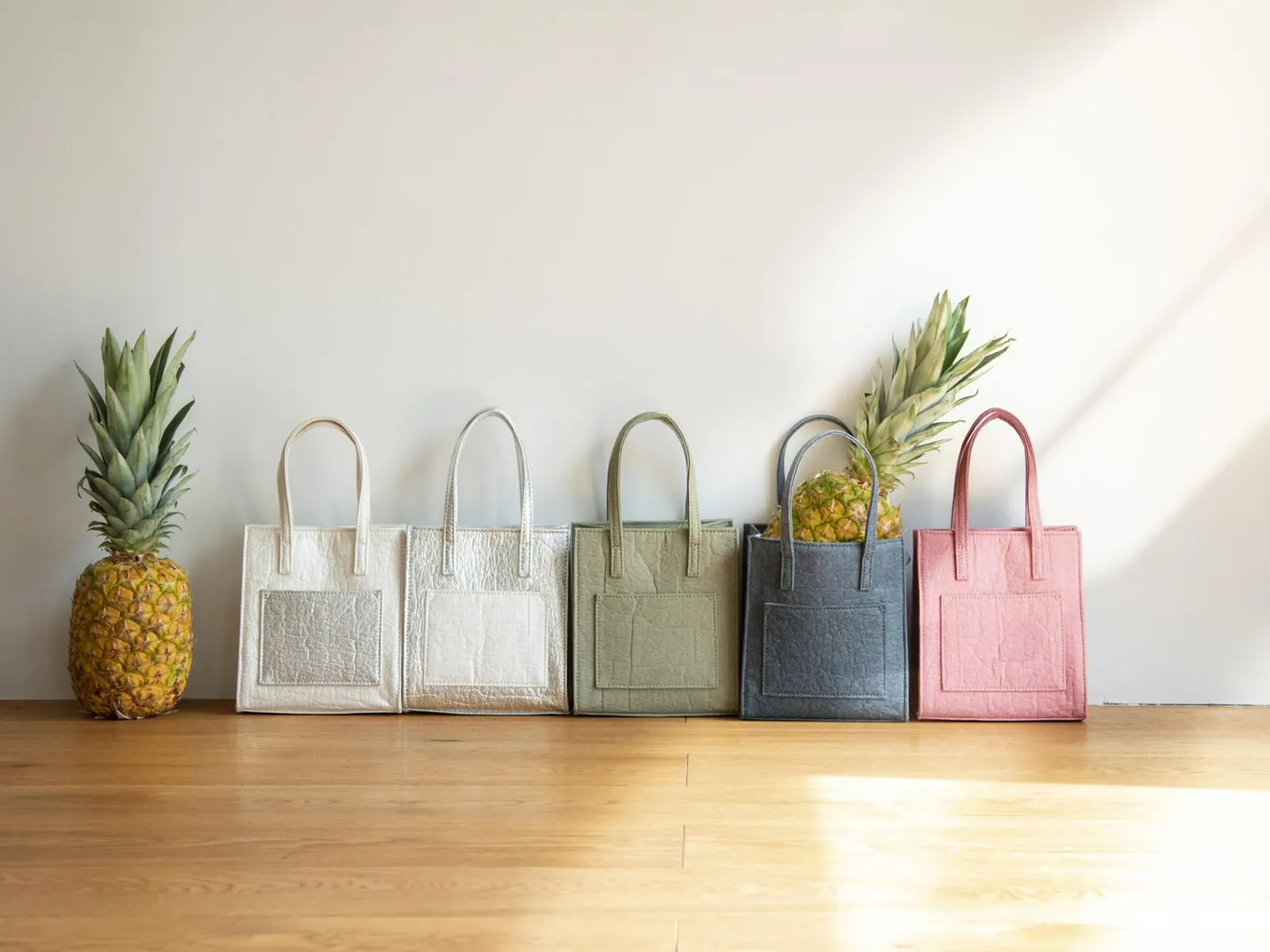 小ぶりバッグは、ジュースパック素材を生かしたポップなデザインが魅力の「コモジャコ」と、リサイクルライスバッグライナーを使用した「モザイク」の2種類をラインナップ。