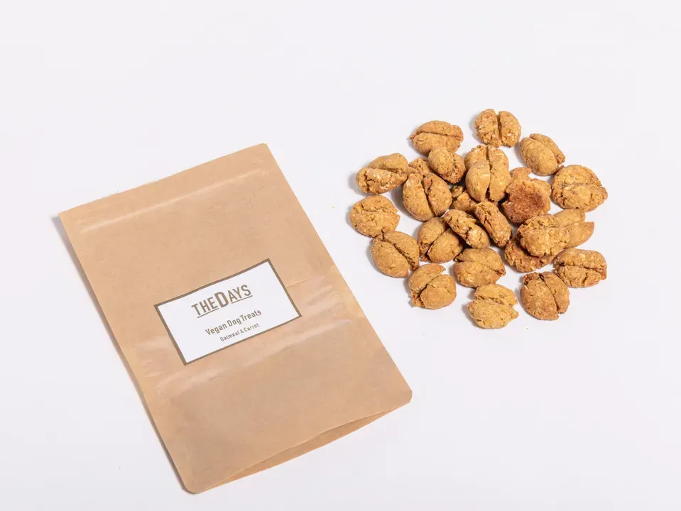 大人気の「VEGAN DOG TREATS」は、ワンちゃんの消化吸収にやさしい素材のみを使用したヒューマングレードの完全植物性のヴィーガンおやつです。藤沢で農薬を使わずに育てられた野菜や、オートミール、果物などを使用し、ひとつひとつ丁寧に手作りしています。コーヒービーンズの形を模したデザインで、お出かけ先でのコーヒーブレイクに一緒に楽しみたくなります。