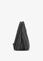 上質な大人の装いを楽しめる「とうふバッグ」は、その名の通り豆腐の形から生まれたデザイン。独特のストラップ設計は巧妙で、斜め掛けも肩掛けも調節可能です。