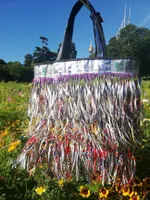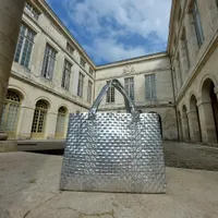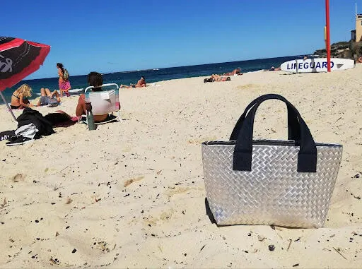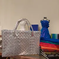 LYRISが提供するサステナブルバッグは主にアルミニウム飲料パックをリボン状にしたストリップで一つひとつ手作りされています。