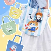 [2026 Spring/Summer New Release] Cat Illustration Cat Pattern Waterproof Tote Bag "MEWJI Miaoji" 7 Colors Lightweight ☆ Fashion Saxophone Blue