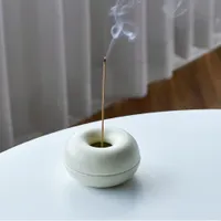 Incense stand ┃ ceramic bagel shape ┃ design that can be discarded by storing ash Incense and incense sticks Minimalist design IV (Ivory)