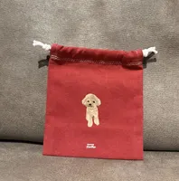 [Border drawstring] original illustration dog motif drawstring purse thick fabric also as a gift◎ Toy poodle